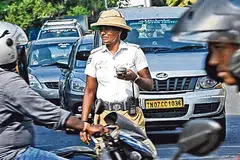 கோடைக் காலத்தில் போக்குவரத்துக் காவலர்களின் நலன் கருதி குளிர் வசதி கொண்ட தொப்பி வழங்கப்படுகிறது.