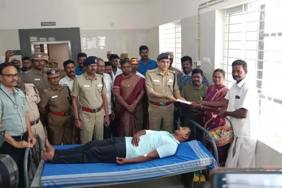 கொள்ளையர்கள் தாக்கியதில் குமாரபாளையம் ஆய்வாளர் தவமணி, உதவியாளர் ரஞ்சித் குமார் ஆகியோர் படுகாயமடைந்து நாமக்கல் அரசு மருத்துவமனையில் சிகிச்சை பெற்று வருகின்றனர். அவர்கள் இருவரையும் தமிழக காவல்துறை இயக்குநர் சங்கர் ஜிவால் புதன்கிழமை நண்பகல் ஒரு மணி அளவில் நேரில் வந்து பார்வையிட்டு ஆறுதல் கூறியதுடன், நலம் விசாரித்து அவர்களுக்கான வெகுமதியை வழங்கி பாராட்டினார்.