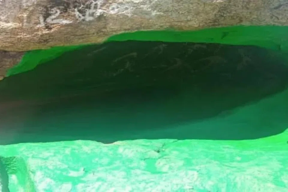 சமணர் குகையில் பச்சை வண்ணம்