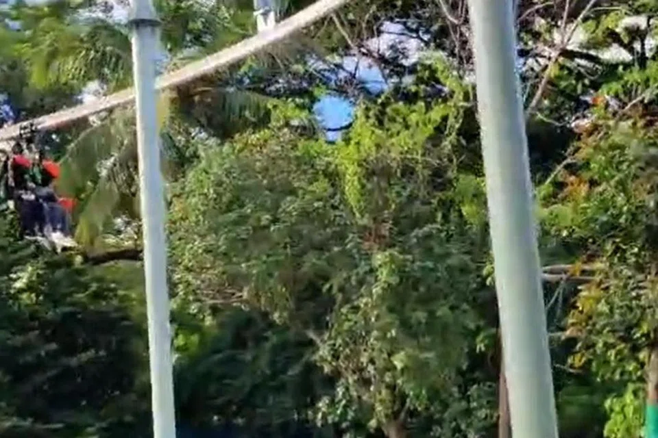 அப்போது ஜிப்லைனில் திடீரென தொழில்நுட்பக் கோளாறு ஏற்பட்டு ரோப் கார் பழுதடைந்து பாதி வழியில் நின்றது. இதனால் அதில் பயணித்துக் கொண்டிருந்த பெண்கள் இருவரும் அதிர்ச்சியடைந்து அலறி கூச்சலிட்டனர்.