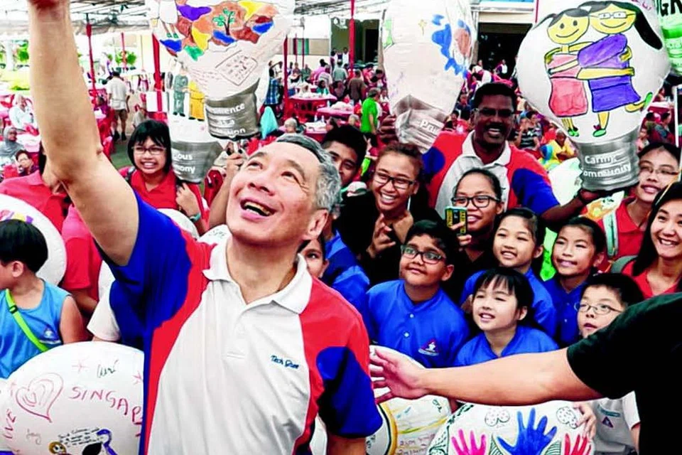 அங்கு இவ்வாண்டின் சிங்கே ஊர்வலத்துக்குப் பயன்படுத் தப்படும் ஆகாய லாந்தர் விளக்குகளுக்கு மாணவர்கள் வண்ணம் தீட்டுவதைப் பார்வையிட்டு மாணவர்களுடன் 'செல்ஃபி' (படம்) எடுத்துக் கொண்டார். பின் அத்தொகுதி மக்களுடன் அளவளாவினார் பிரதமர் லீ. படம்: ஸ்ட்ரெய்ட்ஸ் டைம்ஸ்