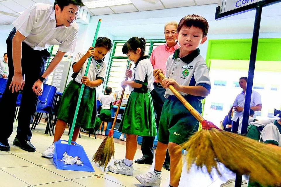 ஸிங்னான் தொடக்கப் பள்ளி, பார்க்வியூ தொடக்கப் பள்ளி, நியூடௌன் உயர்நிலைப் பள்ளி ஆகியவை ஏற்கெனவே மாணவர்களை ஐந்து முதல் பத்து நிமிடங்கள் வரை பள்ளிகளில் துப்புரவுப் பணிகளில் ஈடுபடுத்தும் நடைமுறையைக் கொண்டு வந்துள்ளன. ஜூரோங் வெஸ்ட்டில் உள்ள ஸிங்னான் தொடக்கப்பள்ளியில் இடைவேளையின்போதும் பள்ளி முடிந்து வீடு செல்லுமுன்னரும் மாணவர்கள் துப்புரவுப் பணியில் ஈடுபடுகின்றனர். அத்துடன், குடும்பத்தாரின் வீட்டுப் பணிகளில் எவ்வாறு உதவுகின்றனர் என்பதைப் பட்டியலிடும் வேலையும் தொடக்க நிலை ஒன்று மாணவர்களுக்குத் தரப்பட்டுள்ளது. பார்க்வியூ தொடக்கப் பள்ளியில் மாணவர்கள் பள்ளி நேரம் முடிந்ததும் ஐந்து நிமிடங் களுக்கு தங்கள் பள்ளி அறை களை துப்புரவு செய்கிறார்கள். ஸிங்னான் தொடக்கப் பள்ளிக்கு நேற்று வருகையளித்த தற்காலிக கல்வி அமைச்சர் (பள்ளிகள்) இங் சீ மெங், அங்கு நல்ல சுகாதாரப் பழக்க வழக்கங்களை கற்றுத்தரும் பாடத்தைப் பார்வையிட்டார்.
