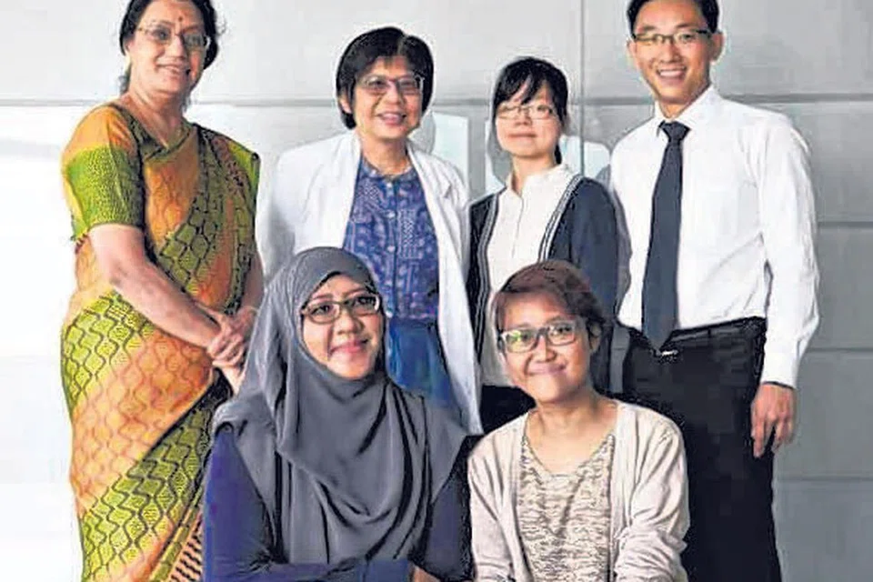 சிறுநீரக தானம் செய்த தாய் நூர் ரஃபிடா நசிர், வேறொருவரிடமிருந்து சிறுநீரக தானம் பெற்ற மகள் சித்தி ரசிடா லோக்மான் ஹடான். பின்னணியில் நிற்பவர்கள் (இடமிருந்து) தேசிய பல்கலைக் கழக மருத்துவமனையின் உடலுறுப்பு மாற்று அறுவை சிகிச்சை நிலையத்தின் துணை இயக்குநர் பேராசிரியர் அ வத்சலா, தேசிய பல்கலைக் கழக மருத்துவமனையின் கூ டெக் புவாட் சிறுவர்கள் மருத்துவக் கழகத்தின் போராசிரியர் யாப் ஹுய் கிம், உறுப்பு மாற்று ஒருங்கிணைப்பாளர் லீ ஷி ஹுய், தேசிய பல்கலைக் கழக மருத்துவமனையின் உடலுறுப்பு மாற்று அறுவை சிகிச்சை நிலையத்தின் மூத்த நிபுணர் டாக்டர் தியோங் ஹோ யீ. படம்: ஸ்ட்ரெய்ட்ஸ் டைம்ஸ்