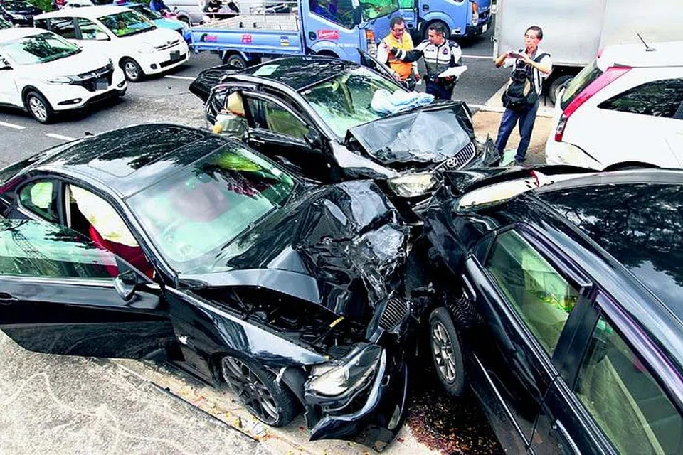 ஆறு கார்கள் சம்பந்தப்பட்ட இந்த விபத்தில் இருவர் காயமுற்று மருத்துவமனைக்குக் கொண்டு செல்லப்பட்டனர். படம்: வான் பாவ்