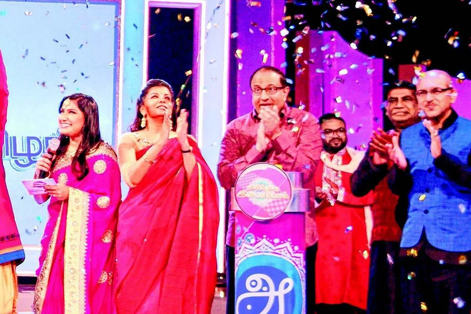 தமிழ்மொழி விழாவை அதிகாரபூர்வமாகத் தொடங்கி வைக்கிறார் அமைச்சர் எஸ் ஈஸ்வரன் (நடுவில்). அவருடன் மீடியாகார்ப் தமிழ், மலாய் சமூகப் பிரிவின் தலைவர் டாக்டர் சித்ரா ராஜாராம் (இடமிருந்து 3வது), வளர்தமிழ் இயக்கத் தலைவர் ஆர் ராஜாராம் (வலமிருந்து 2வது), கௌரவத் தலைவர் வி பி ஜோதி (வலது), தமிழ்மொழி கற்றல் வளர்ச்சிக் குழுவின் துணைத் தலைவர் டாக்டர் டி சந்துரு (வலமிருந்து 3வது). படம்: ஜி சுகநிதி செல்வன்