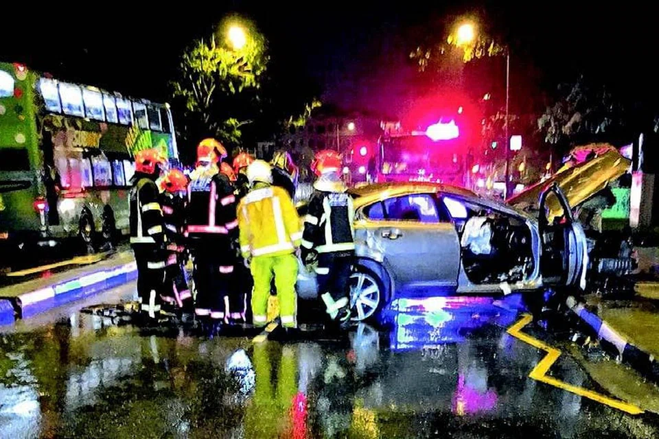 கனத்த மழை பெய்துகொண்டிருந்த சமயத்தில் இந்த விபத்து நிகழ்ந்திருப்பதால், கார் சாலையில் சறுக்கி இரும்புத் தடுப்பில் மோதியிருக்கலாம் என்று நம்பப்படுகிறது. படம்: திரு யாப்