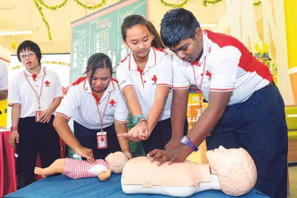 'ஏஎஸ்பிஎன் டெல்டா சீனியர்' பள்ளியில் புதிதாகத் தொடங்கப்பட்ட சிங்கப்பூர் செஞ்சிலுவைச் சங்கத்தின் இளையர் மன்றத்தில் அந்தப் பள்ளியின் மாணவர்கள் சேர்ந்து முதலுதவித் திறன்களைக் கற்றுக் கொள்ளலாம். படம்: ஸ்ட்ரெய்ட்ஸ் டைம்ஸ்