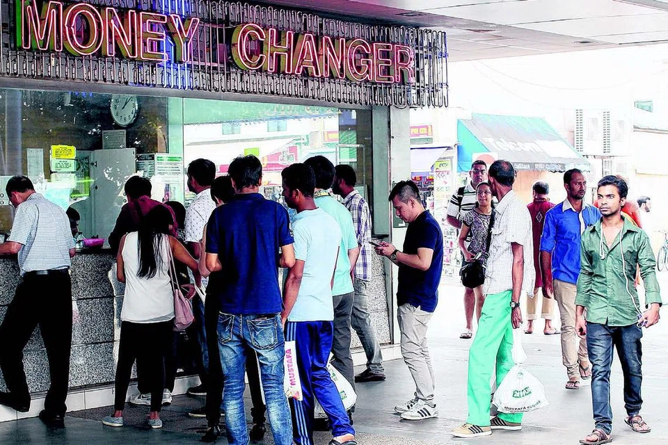 முஸ்தபா நாணய மாற்று நிறுவனத்தில் நாணயம் மாற்ற வரிசை பிடித்து நிற்கும் மக்கள். படம்: திமத்தி டேவிட்