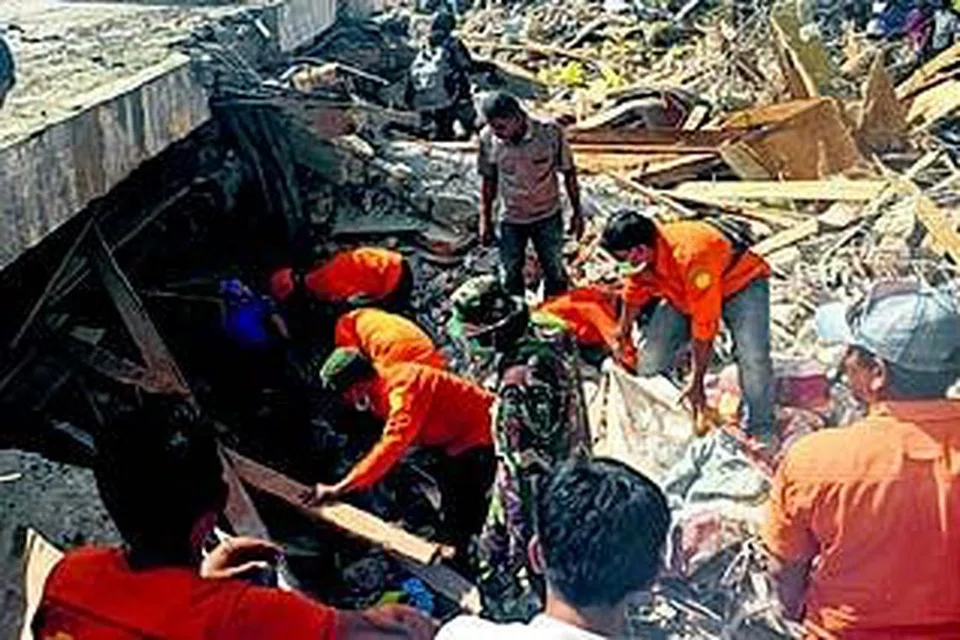 அச்சே மாநிலத்தில் நிலநடுக்கத்தின்போது இடிந்துவிழுந்த ஒரு பள்ளிவாசலுக்கு வெளியில் குடியிருப்பாளர்கள் சோகத்துடன் அமர்ந் திருக்கின்றனர். படம்: ஏஎஃப்பி