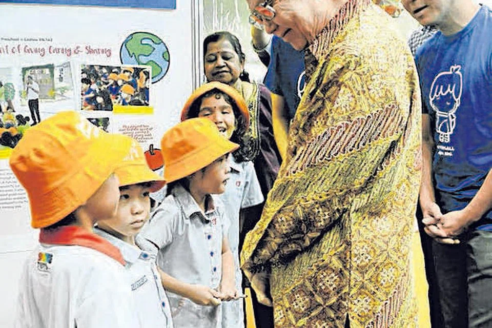 சோதனை பாலர் பள்ளியை நேற்று பார்வையிட்ட அதிபர் டோனி டான் கெங் யாம். படம்: ஸ்ட்ரெய்ட்ஸ் டைம்ஸ்