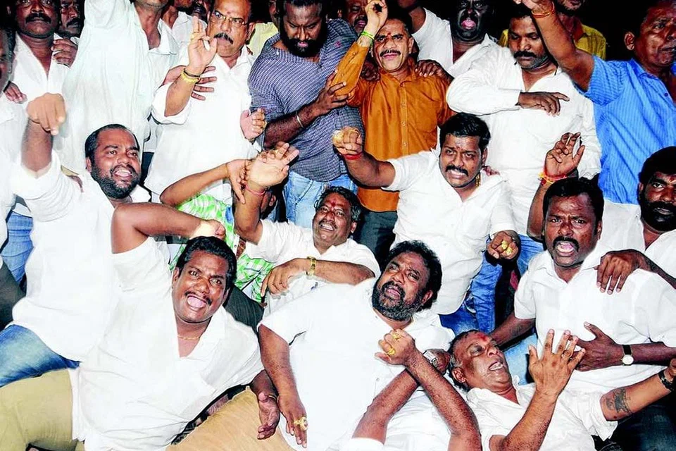 வேதா இல்லத்தில் வருமான வரித் துறையினர் நேற்று முன்தினம் இரவு சோதனை நடத்தியபோது போயஸ் தோட்டத்தின் முன்பு திரண்ட தினகரன் ஆதரவாளர்கள் மத்திய அரசுக்கு எதிரான முழக்கங்களை எழுப்பினர். அவர்களைக் கட்டுப்படுத்த முயன்ற போலிசார் அனைவரையும் கைது செய்தனர். படம்: சதீஷ்