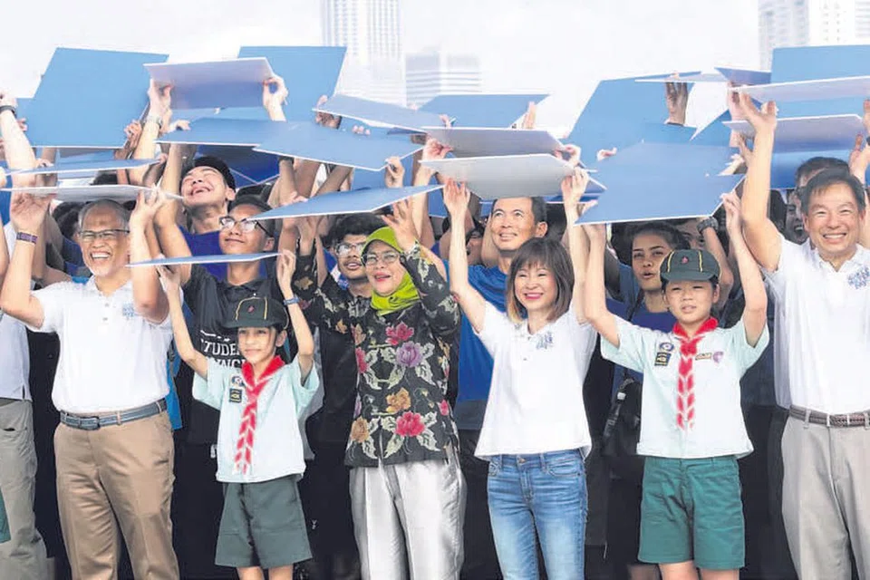 மரினா அணைக்கட்டில் நேற்று நடந்த கொண்டாட்டங்களின் தொடக்கவிழாவில் அதிபர் ஹலிமா யாக்கோப் சிறப்பு விருந்தினராகக் கலந்துகொண்டார். படம்: ஸ்ட்ரெய்ட்ஸ் டைம்ஸ்