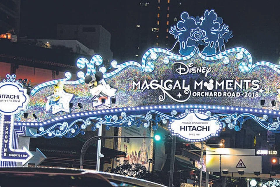 ஆர்ச்சர்ட் ரோட்டிலுள்ள கிறிஸ்துமஸ் ஒளியூட்டு அலங்காரங்களில் வால்ட் டிஸ்னி கேலிச்சித்திர கதாபாத்திரங்கள் இடம்பெறுகின்றன. படம்: ஸ்ட்ரெய்ட்ஸ் டைம்ஸ்