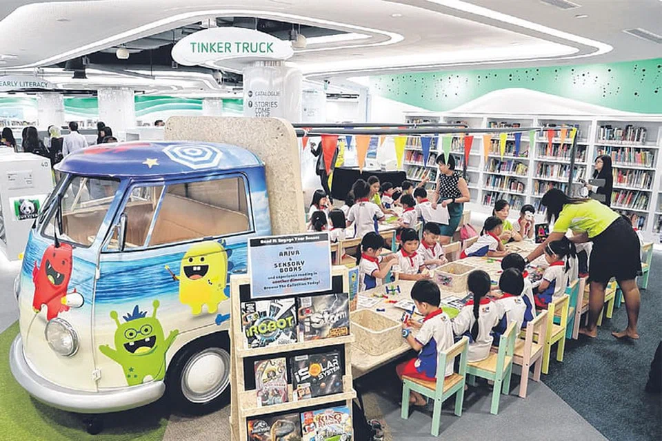 குழந்தைகள் அங்கு காகிதங் களைக் கொண்டு கைவினைப் பொருட்களைச் செய்யலாம்; சொற்புதிர்களுக்குச் சொந்தமாக விடைகாண முயலலாம்; விண் வெளி, விலங்குகள், உடல்நலம் உள்ளிட்ட தலைப்புகளில் உள்ள, 'ஆக்மென்டட் ரியாலிட்டி' எனும் கணினித் தொழில்நுட்பத்தின் மூலம் புத்தகங்களை வாசித்து மகிழலாம். பெற்றோர்கள் 'கியூ ஆர்' குறியீடு துணையுடன் பிரத் தியேக கைபேசிச் செயலி மூலம் அப்புத்தகங்களைத் திறக்கலாம். பெரியவர்கள் மின்னிலக்க, இணைய வளங்களைப் பயன் படுத்தி தங்களது திறன்களை மேம்படுத்த உதவும் வகையில் ஆறு கற்றல் கணினிகள் நிறுவப் பட்டுள்ளன. பெரியவர்களுக்கான பகுதி தொண்டூழியர்களால் நடத்தப் படும்.
