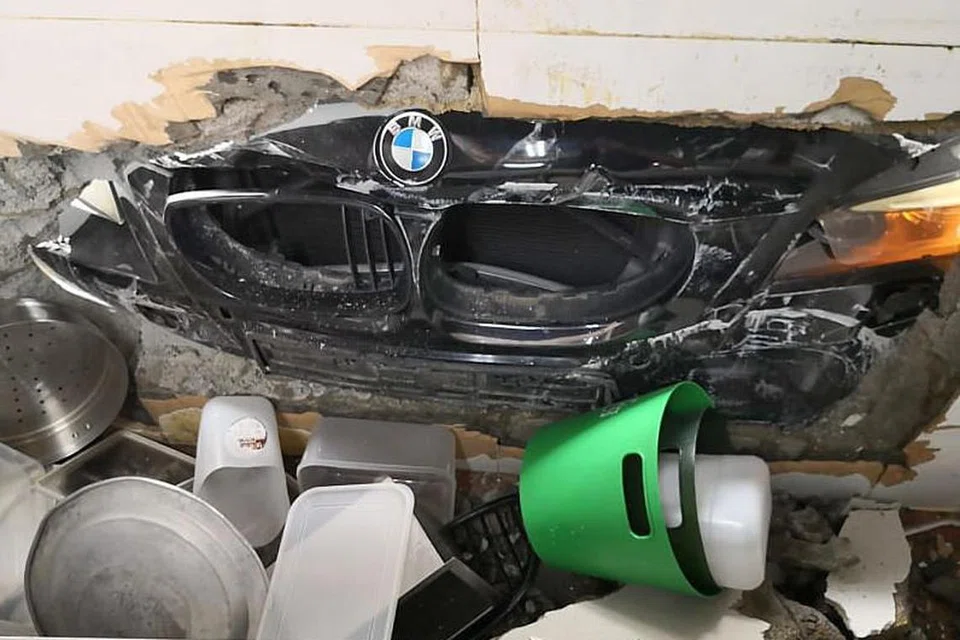 கார் நிறுத்துமிடத்தின் கட்டண நுழைவாயிலை மோதிய 'பிஎம்டபள்யூ' கார், பின்னர் வேறு இரண்டு கார்களை மோதி இறுதியில் காப்பிக் கடையின் சுவற்றில் மோதி நின்றது.