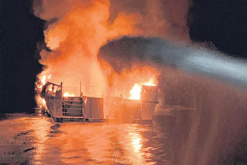 அமெரிக்காவின் கலிஃபோர்னியாவில் படகு ஒன்று தீக்கிரையானதில் குறைந்தது 25 பேர் மாண்டு போயினர்; மேலும் ஒன்பது பேரைக் காணவில்லை. 'கான்செப்ஷன்' என்ற அந்த முக்குளிப்பாளர்கள் படகு, சாந்த குரூஸ் தீவை ஒட்டிய கடற்பகுதியில் நங்கூரமிடப்பட்டு இருந்தது. அமெரிக்க நேரப்படி நேற்று முன்தினம் அதிகாலை 3.30 மணியளவில் அப்படகில் இருந்து உதவிகோரி அழைப்பு வந்ததாக கடலோரக் காவல் படை தெரிவித்தது. படகின் மேல் தளத்தில் உறங்கிக்கொண்டிருந்த அதன் ஊழியர்கள் ஐவரும் கடலில் குதித்துத் தப்பிவிட்டனர். கீழ்த்தளத்தில் உறங்கிய பயணிகள் மாட்டிக் கொண்டனர். தீக்கிரையான படகு, நீருக்குள் மூழ்கிவிட்டதாகத் தெரிவிக்கப்பட்டது.