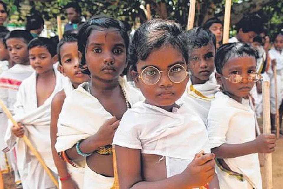 இந்திய தேசத் தந்தை மகாத்மா காந்தியின் 150வது பிறந்தநாள் நேற்று நாடு முழுவதும் மிகச் சிறப்பாக அனுசரிக்கப்பட்டது. அந்த வகையில், சென்னையைச் சேர்ந்த ஒரு பள்ளியில் ஏற்பாடு செய்யப்பட்டிருந்த நிகழ்ச்சியில் அப்பள்ளிக் குழந்தைகள் இப்படி காந்தி வேடத்தில் தோன்றியது கண்கொள்ளாக் காட்சியாக இருந்தது. படம்: ஏஎஃப்பி