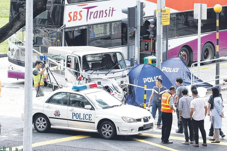 காலை 9.30 மணி அளவில் மேரிமவுண்ட் சாலையை நோக்கி அங் மோ கியோ அவென்யூ 6 வழியாக அவர் லாரியை ஓட்டிச் சென்றபோது மூன்று நடைபாதையர்கள் மீது லாரி மோதியது.