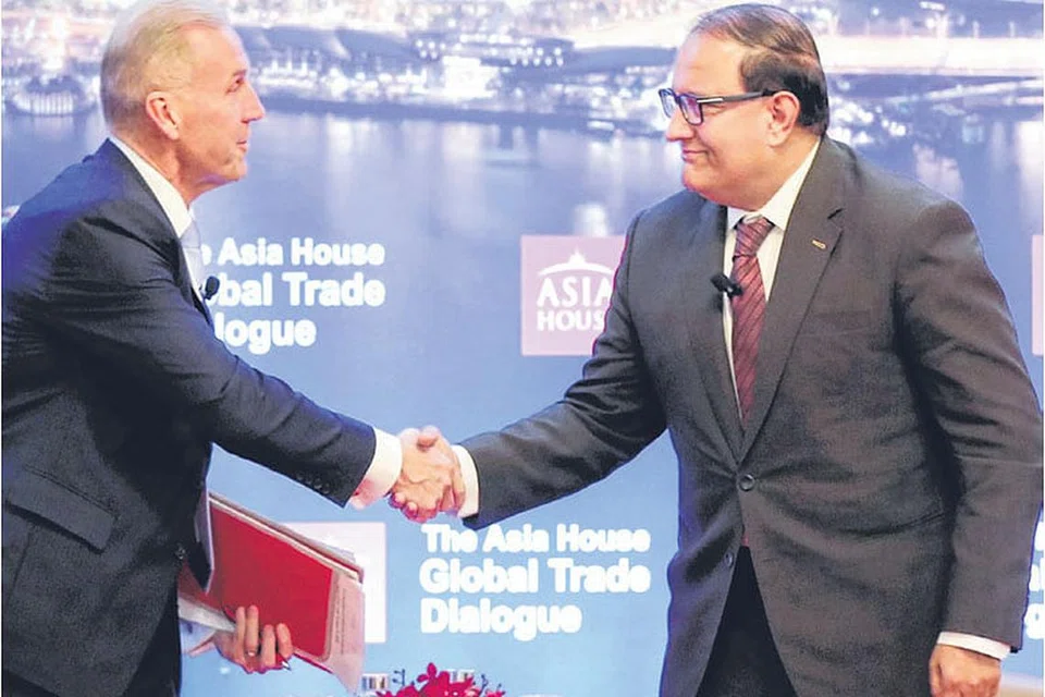 மாண்டரின் ஓரியண்டல் ஹோட்டலில் நடைபெற்ற ஏஷியா ஹவுஸ் உலக வர்த்தக கலந்துரையாடல் நிகழ்ச்சியில் சுமார் 300 வர்த்தக, அரசாங்கத் தலைவர்கள் கலந்துகொண்டனர்.