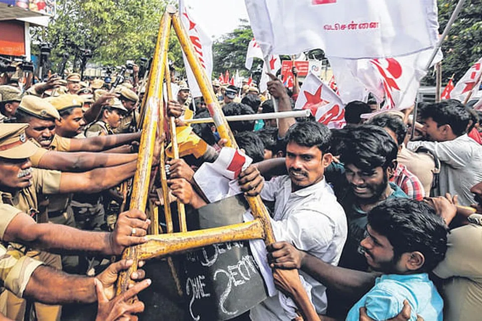 வன்முறை வெடித்ததால் போலிசார் தடியடி நடத்தியும் கண்ணீர்ப் புகை வீசியும் போராட்டத்தில் ஈடுபட்டவர்களை விரட்டி அடித்தனர்.