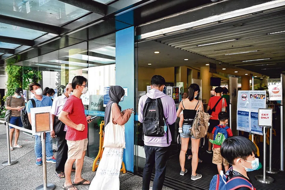 தடுப்பூசி அடிப்படை யிலான பாதுகாப்பு நிர்வாக நடைமுறை நேற்று சிங்கப்பூர் நூலகங்களில் நடப்புக்கு வந்தது. அதன் காரணமாக பீஷான் நூலகத்திற்குள் நுழைய பலர் வரிசையில் காத்திருந்தனர்.