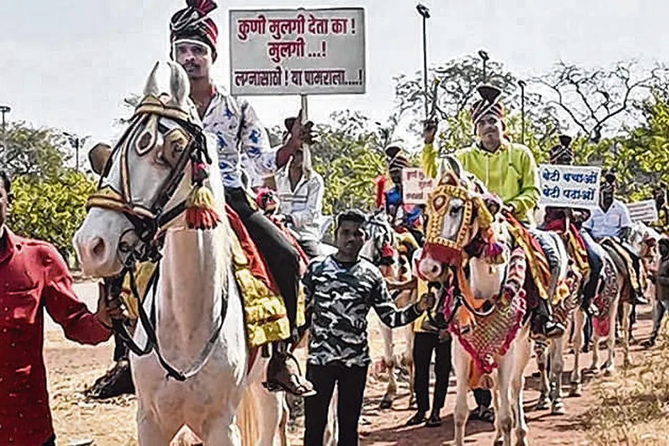 இந்தியாவின் மகாராஷ்டிர மாநிலத்தில் ஆண்களைக் காட்டிலும் பெண்களின் எண்ணிக்கை குறைவாக இருப்பதால் மணமுடிக்க பெண் கிடைப்பது குதிரைக் கொம்பாக இருக்கிறது. இதனை எடுத்துரைக்கும் விதத்தில் குதிரையில் 50 ஆண்கள் மணமகன் வேடமிட்டு ஊர்வலமாகச் சென்றதைக் காட்டும் காணொளி சமூக ஊடகங்களில் பரவி வருகிறது.