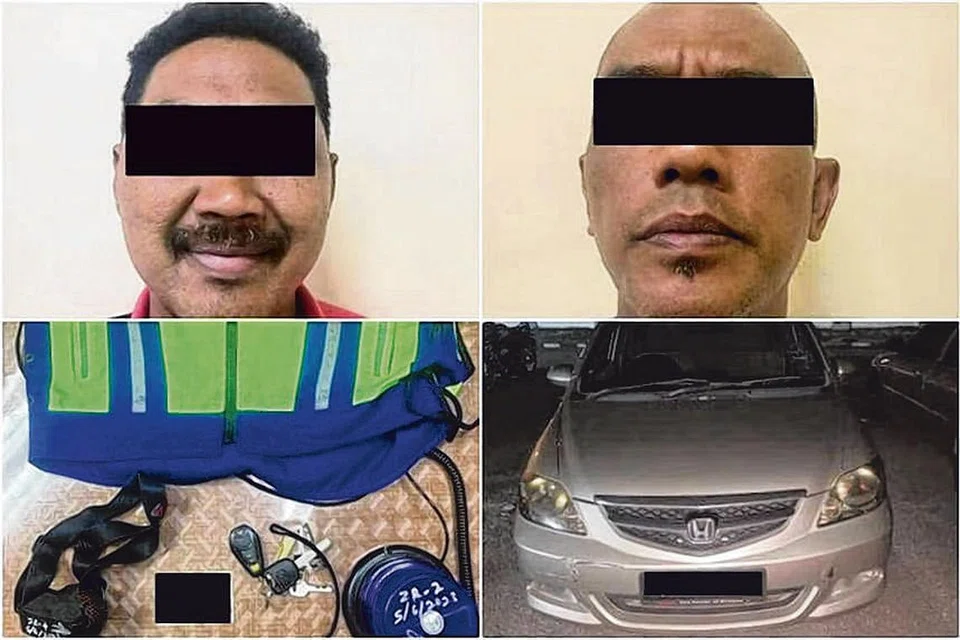 இருவருக்கும் வயது 43 முதல் 48 வரை இருக்கும். பொந்தியானில் உள்ள பெர்மாஸ் குடியிருப்புப் பகுதியில் இருவரும் கைது செய்யப்பட்டதாகவும் 3வது நபர் தேடப்படுவதாகவும் அவர் கூறினார்.