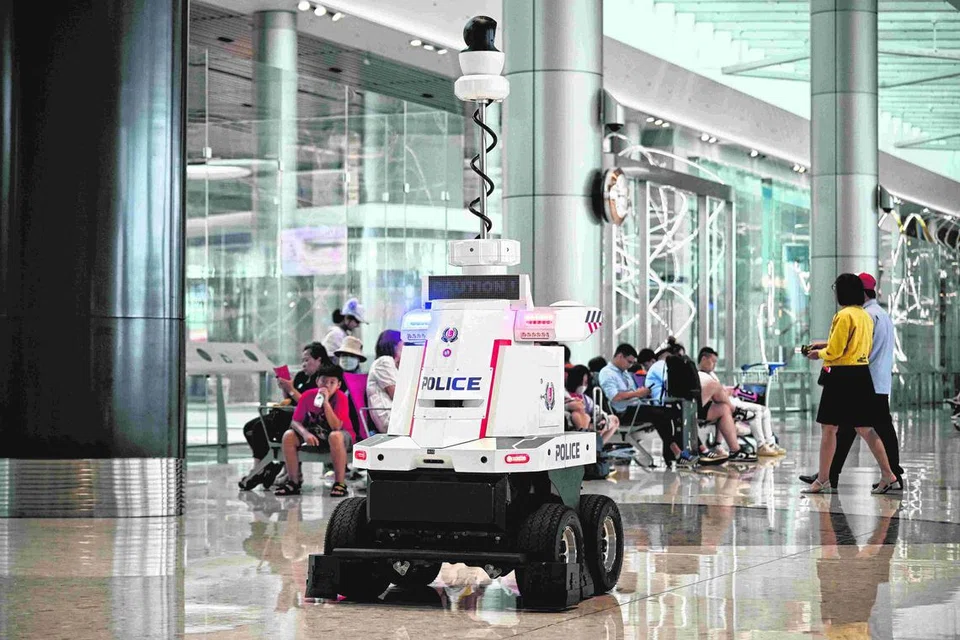 நேற்று முனையம் 4ல் நடைபெற்ற செய்தியாளர் கூட்டத்தில் காவல் ரோபோக்களின் சுற்றுக்காவல் செயல்பாடுகள் பற்றி விளக்கப்பட்டது.