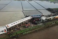 ரயில் வண்டிகளின் பெட்டிகள் பிரிக்கப்பட்டு, மீட்புப் பணியாளர்கள் பலவித இயந்திரங்களைக் கொண்டு, இரும்புப் பொருள்களை வெட்டி அகற்றி, சிக்கிய பயணிகளை மீட்க முயல்கின்றனர்.