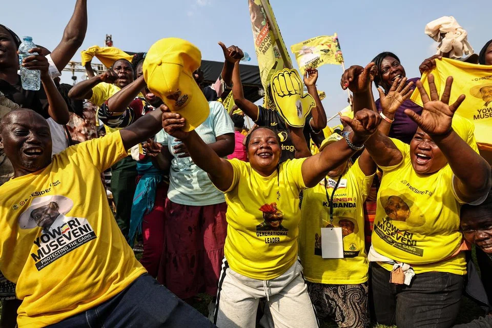 கிழக்கு ஆப்பிரிக்க நாட்டை கிட்டத்தட்ட நாற்பது ஆண்டுகளாக வழிநடத்தி வரும் 81 வயது முசேவேனி, ஜனவரி 15ஆம் தேதி இணைய முடக்கத்தின்போது நடைபெற்ற வாக்கெடுப்பில் எதிர்க்கட்சியான தேசிய ஒற்றுமைத் தளம் எனும் கட்சியின் தலைவரான போபி வைனியை மகத்தான முறையில் தோற்கடித்ததாக அறிவிக்கப்பட்டது.