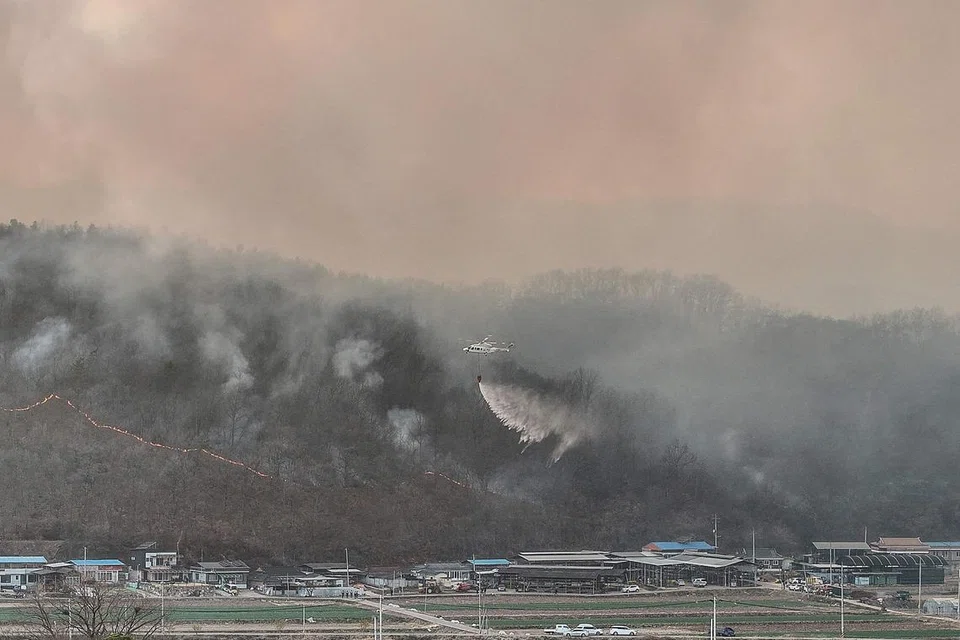 தென் கொரியாவின் தெற்கில் உள்ள சான்சியோங் மாவட்டத்திலும் தென் கொரியாவின் குறைந்தது மூன்று வெவ்வேறு பகுதிகளிலும் மார்ச் 21ஆம் தேதி ஏற்பட்ட காட்டுத் தீயை அணைக்க தீயணைப்பு வீரர்கள் போராடி வருகின்றனர்.