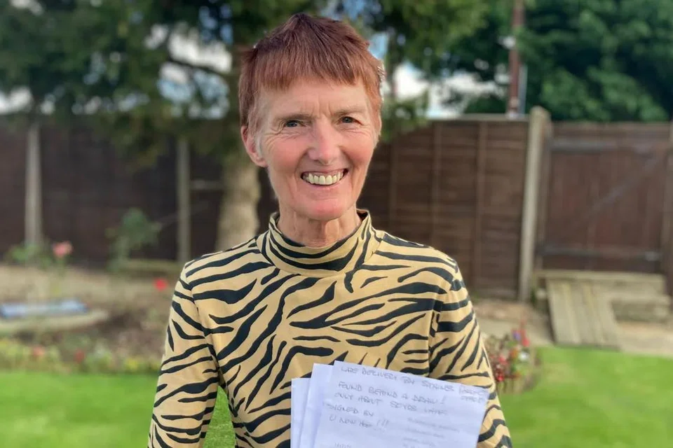 அதில் ‘ஸ்டெய்ன்ஸ் அஞ்சல் அலுவலகத்தால் தாமதிக்கப்பட்ட விநியோகம். டிராவர் பின்னால் கண்டுபிடிக்கப்பட்டது. சுமார் 50 ஆண்டுகள் தாமதம் மட்டுமே’ என்று எழுதப்பட்டிருந்தது.
