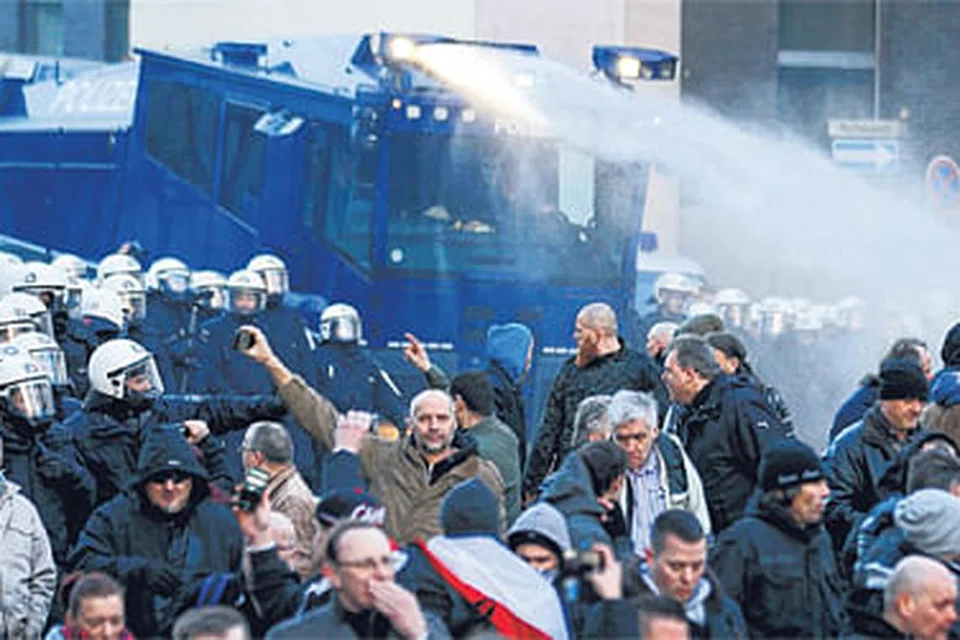 அந்த மோதலில் மூன்று போலிஸ்காரர்களும் செய்தியாளர் ஒருவரும் காயம் அடைந்ததாகக் கூறப்பட்டது. அந்த ஆர்ப்பாட்டம் தொடர்பில் 15 பேரை போலிசார் கைது செய்துள்ளனர். படம்: ராய்ட்டர்ஸ்