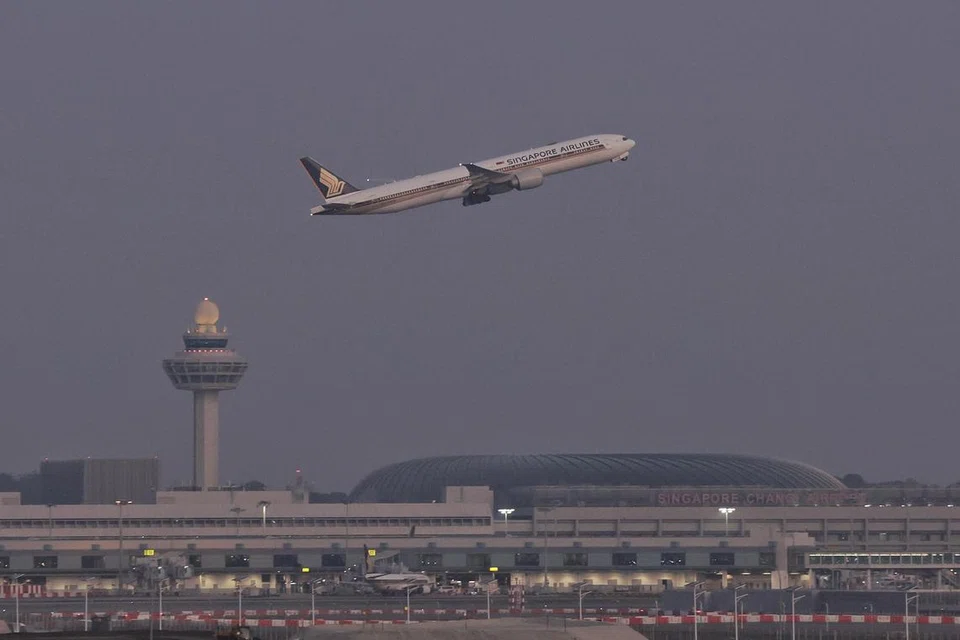 சாங்கி விமான நிலையத்திலிருந்து புறப்படும் சிங்கப்பூர் ஏர்லைன்ஸ் விமானம். - படம்: ஸ்ட்ரெய்ட்ஸ் டைம்ஸ்