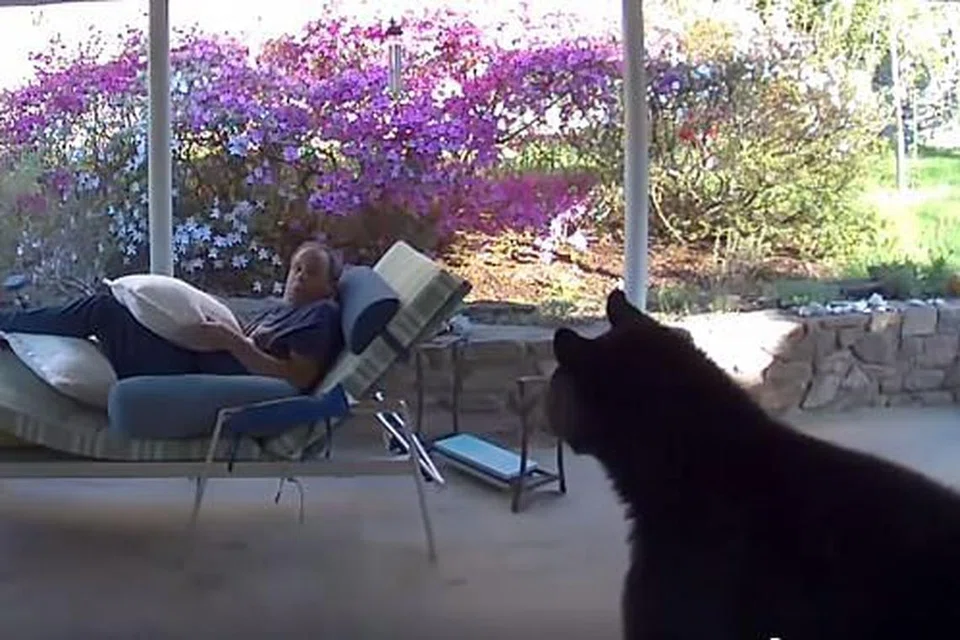 ஏப்ரல் 11ஆம் தேதி மாலை நேரத்தில் தமது வீட்டின் தோட்டப்பகுதியில் ஓய்வெடுத்துக்கொண்டிருந்த ஆடவர் திடீரென ஒரு கறுப்புக் கரடி தன் அருகில் நெருங்கி வருவதைக் கண்டு அதிர்ச்சியடைந்தார்.