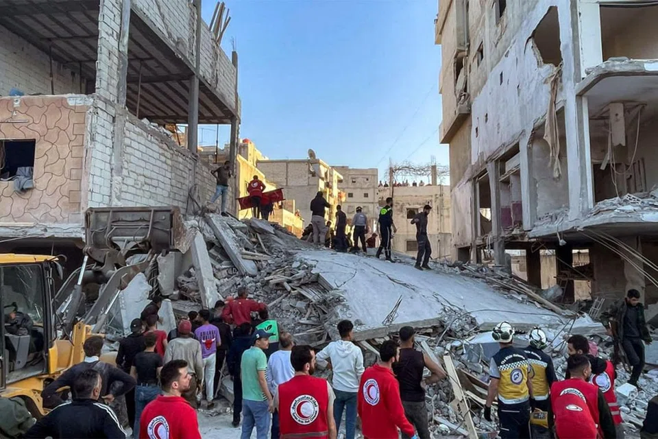 இடிந்து விழுந்த குடியிருப்புக் கட்டடத்தில் உள்ள இயந்திர பாகங்கள் கடையில் (hardware store) ஏற்பட்ட வெடிப்பால் 16 பேர் கொல்லப்பட்டனர் என்று சிரியாவின் குடிமைத் தற்காப்புப் படை சொன்னது. குறைந்தது 18 பேர் காயமடைந்ததாகவும் அது டெலிகிராம் செயலியில் குறிப்பிட்டது.