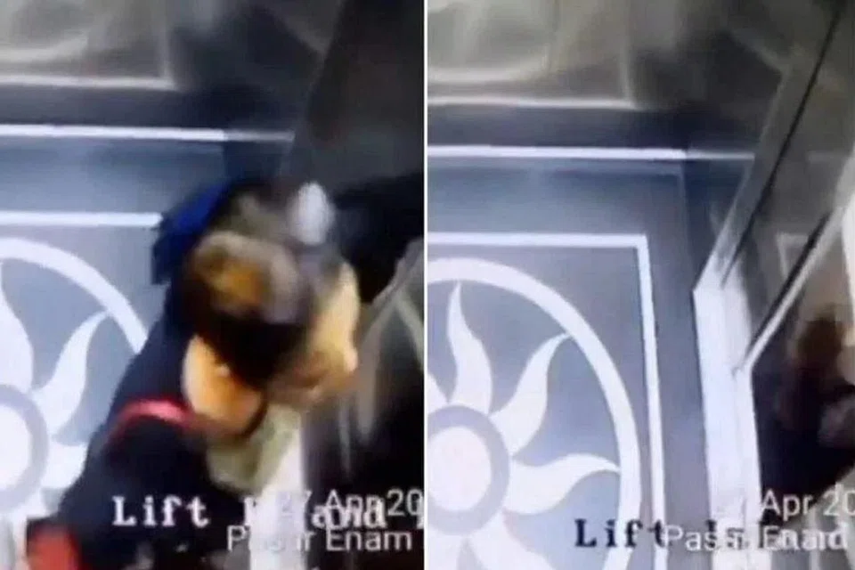 அய்சியா சிண்டா டேவி எனப்படும் அந்தப் பெண் மின்தூக்கியில் இருந்து கிழே விழும் காட்சி சமூக ஊடகங்களில் பரவி வருகிறது.