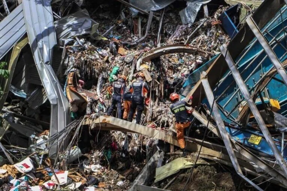 கிட்டத்தட்ட 20 மாடி உயரமுள்ள பிரம்மாண்டமான குப்பை மேடு சரிந்ததில், அருகிலுள்ள மறுசுழற்சி மையமும் பணியாளர் குடியிருப்புகளும் குப்பைகளுக்குள் புதைந்தன.