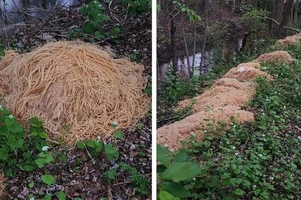 நியூஜெர்சி அருகே நூற்றுக்கணக்கான கிலோகிராம் எடை கொண்ட பாஸ்டா உணவை சட்டவிரோதமாக மலைபோல் குவித்துக்கொட்டியுள்ளனர்.