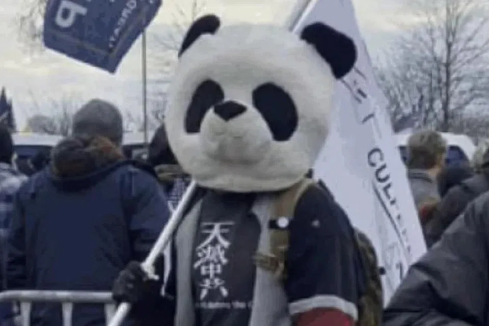 அமெரிக்க நாடாளுமன்றக் கட்டடத்தில் பாண்டா கரடி உருவத்தில் மாறுவேடத்தில் இருந்த நபர் கலவரத்தில் ஈடுபட்ட சந்தேகத்தின்பேரில் கைது செய்யப்பட்டுள்ளார்.