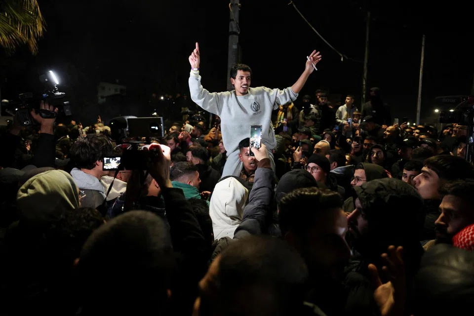 காஸாவில் உள்ள சில பகுதிகளில் ஹமாஸ் போராளிகள் தங்கள் மறைவிடங்களிலிருந்து வெளியே வந்தபோது பாலஸ்தீனர்கள் அவர்களுக்கு ஆதரவாக ஆரவாரம் செய்தனர்.