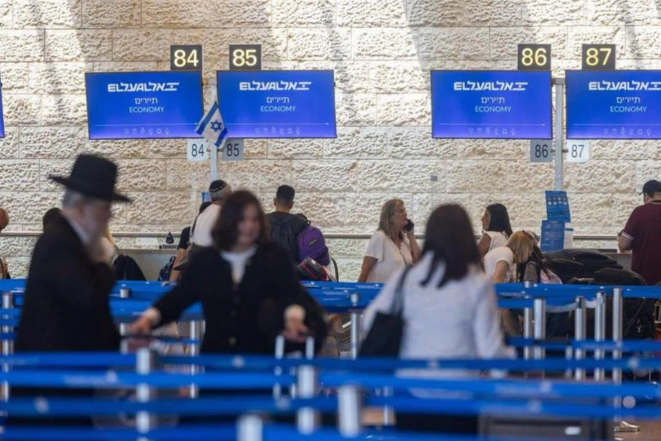 இஸ்ரேலின் டெல் அவிவ் நகரத்தில் பென் குரியோன் அனைத்துலக விமான நிலையத்தில் பயணிகள் வரிசையில் காத்திருக்கின்றனர்.  - படம்: புளூம்பர்க்