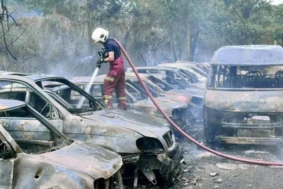 காட்டுத் தீயை அணைக்க இரண்டு தீயணைப்பு வாகனங்களுடன் 9 தீயணைப்பாளர்கள் பணியில் ஈடுபட்டனர். அவர்கள் சம்பவ இடத்தை அடைந்தபோது, தீ ஏற்கெனவே சில வாகனங்களுக்குப் பரவியிருந்தது.