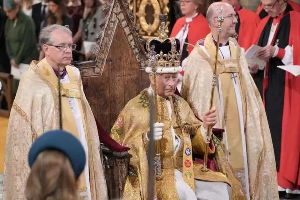 74 வயதாகும் மன்னர் சார்ல்சுக்கு 360 ஆண்டுப் பழமையான செயிண்ட் எட்வர்டின் கிரீடம் அணிவிக்கப்பட்டது.