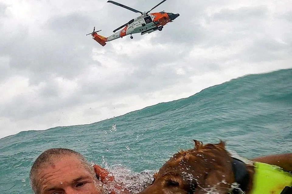படகு கவிழ்ந்ததில் கடலில் தத்தளித்துக்கொண்டிருந்த ஆடவரையும் அவரது நாய்க்குட்டியையும் அமெரிக்கக் கடலோரக் காவல் படை காப்பாற்றியது.