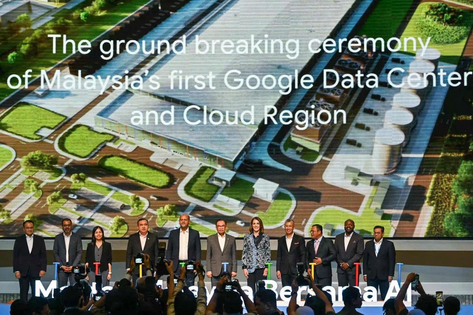 மலேசியாவில் கூகல் நிறுவனத்தின் US$2 பில்லியன் (S$2.57 பி.) மதிப்பிலான புதிய தரவு மையம், மேகக் கணினி வட்டாரத்துக்கான நில அகழ்வு நிகழ்ச்சியில் பிரதமர் அன்வார் பேசினார்.