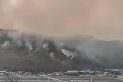 இம்மாதம் 21ஆம் தேதி சன்சியொங் பகுதியில் தொடங்கிய காட்டுத்தீ பலத்த காற்றால் அருகில் உள்ள ஆறு பகுதிகளுக்கு மளமளவென பரவியது. காட்டுத்தீயால் ஆயிரக்கணக்கானோர் வீடுகளை இழந்து தவிக்கின்றனர்.