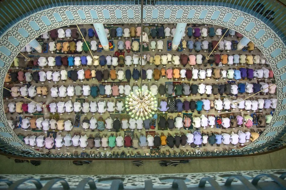 இந்தியத் தலைநகர் புதுடெல்லியில் உள்ள 17ஆம் நூற்றாண்டைச் சேர்ந்த ஜமா பள்ளிவாசலில் ஆயிரக்கணக்கானோர் கூட்டாகத் தொழுகை நடத்தினர்.