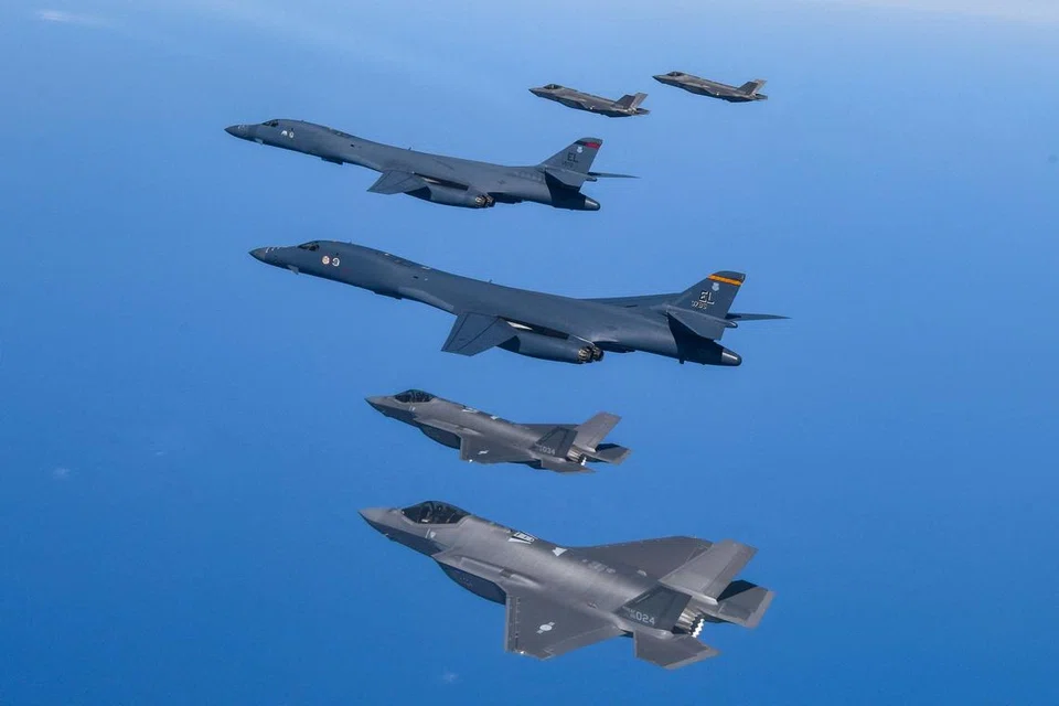 புதன்கிழமை, தென்கொரிய, ஜப்பானியப் போர் விமானங்களுடன் இணைந்து அமெரிக்காவின் குண்டு வீசும் ‘பி-1பி’ ரகப் போர் விமானங்கள் பயிற்சியில் ஈடுபட்டன.