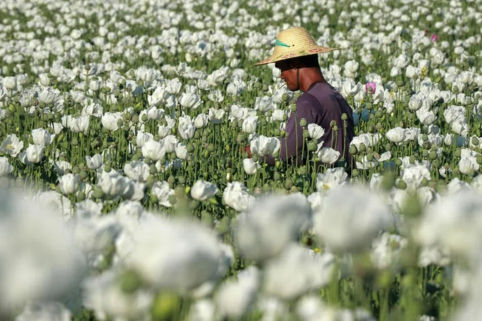 பீகோன் நகரத்தில் உள்ள சட்டவிரோத பாப்பி செடிப் பண்ணையில் விவசாயி ஒருவர் பணியாற்றி வருகிறார். - கோப்புப் படம்: ஏஎஃப்பி